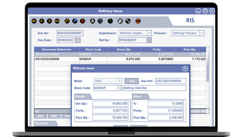 Keep refinery operations, inventory, assays, invoicing, and credit management fully connected within a single integrated system.